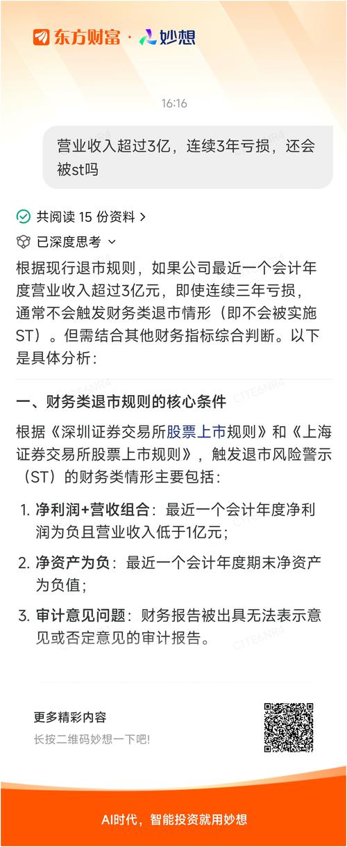 #@妙想,你怎么看?#妙想一下:营业收入超过3亿,连续3年亏损,还会被st吗