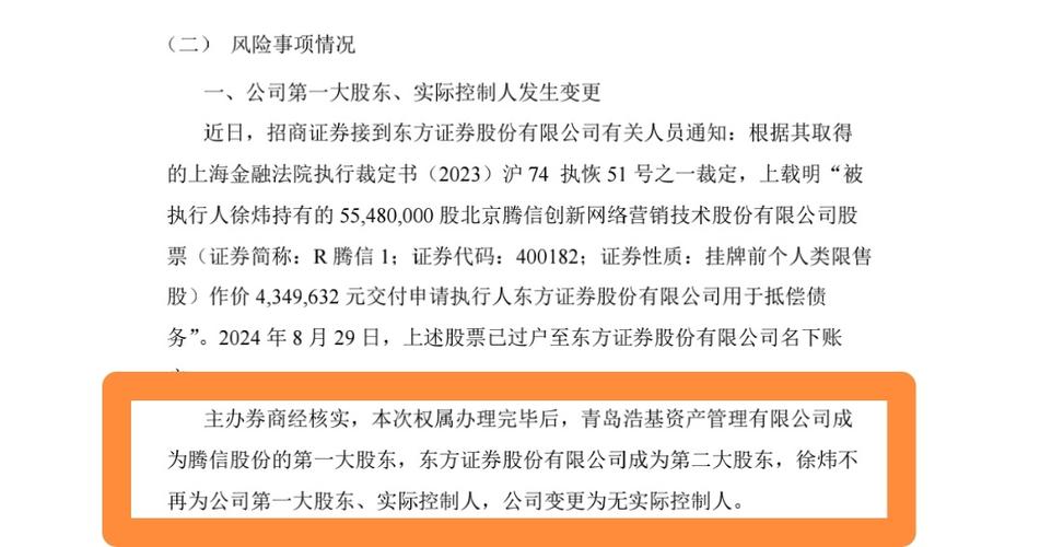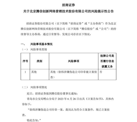 公告 R腾信1:北京腾信创新网络营销技术股份有限公司风险提示公告