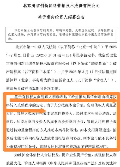 各位股友们:腾信还有希望吗?能否进入预重整程序?