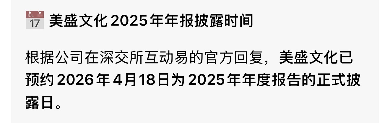 强烈谴责美盛1在没有正当可以让人信服的理由情况下,故意拖延年报和中报不公布,使广大美盛股民无法正确判断美盛公司是否陷入经营困境,由此造成的损失美盛公司应该负责,我们保留追究权力。 美盛1股民协会 2026年4月1日