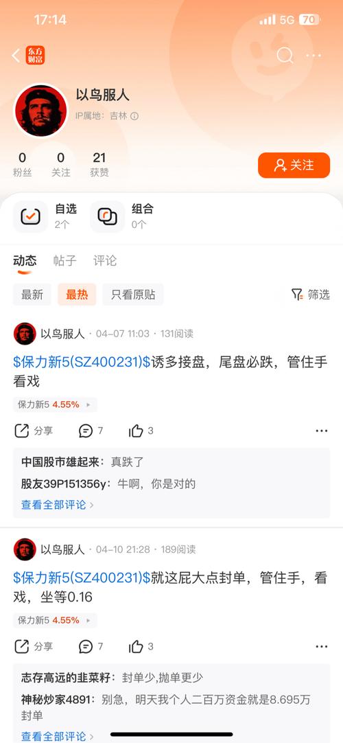 $保力新5(SZ400231)$各位,根据我炒股15年的经验,只要我一卖,股票就涨了。所以明天我打算卖出2万股,就当给大伙儿做贡献了。