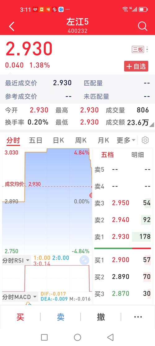 $左江5(SZ400232)$捡漏了2.90成交了,!