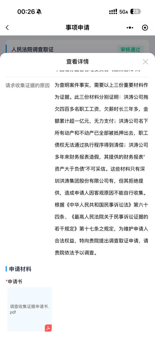 $洪涛3(SZ400241)$我向“中华人民共和国最高人民法院”申请的“调查令”已经审核通过。自行百度什么叫法院调查令,以及审核通过的条件。