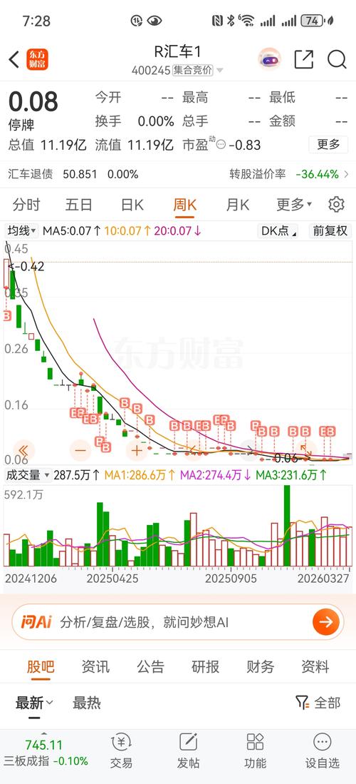 都在盯着R汇车1(400245)明天4月4日开盘是吧?直接给你们泼盆冷水:别做梦反弹,0.07元巨单压盘,抢跑的全是送菜! 明天开盘直接给我看好了——卖一位置数万手巨单堵死,密密麻麻一眼望不到头,买盘直接空白!想割肉?排队都排不到你!这周周五零成交、零换手,0.07元就是铁底,没人敢接盘,想跑?门都没有! 别觉得价格低就能抄底,这根本不是底,是退市股流动性枯竭的坟墓!公司债务烂成一锅粥,转债违约风...