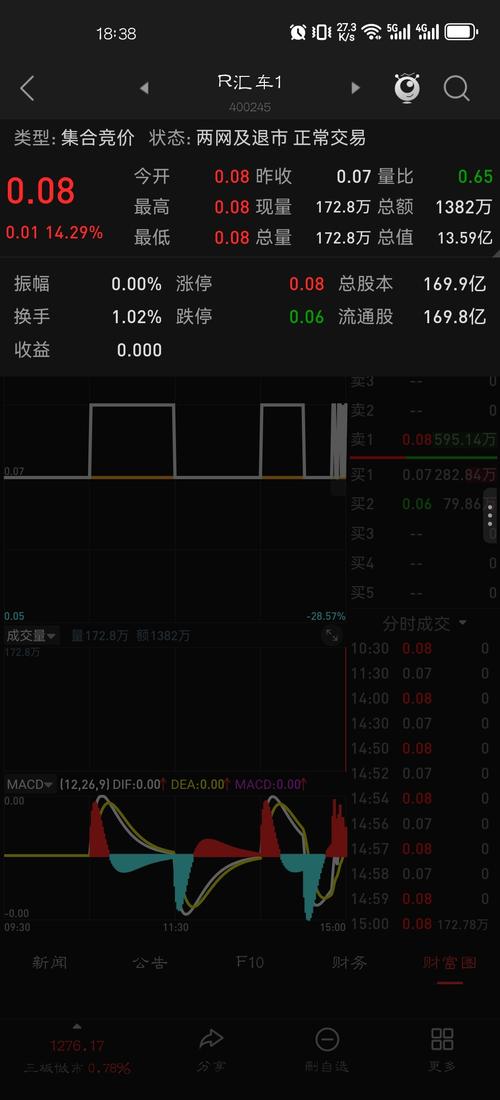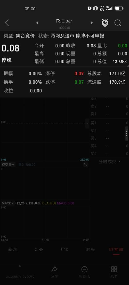 $R汇车1(SZ400245)$中银5因为面值不足1元退市的,白菜价0.14元的时候,有多少人敢买,现在又有多少人后悔多少人羡慕呢;R汇车1也是因为面值不足1元退市的,且退市时和中银5比较,很多人觉得比中银5有性价比,现在0.08元又有多少人敢买呢,等它启动后不知道有没有人会后悔,投资有风险,但也要有眼光和魄力、胆量,股市本来就是博弈的地方。没有人能保证买到最低点卖在最高点,现在的R汇车1是四两拨...