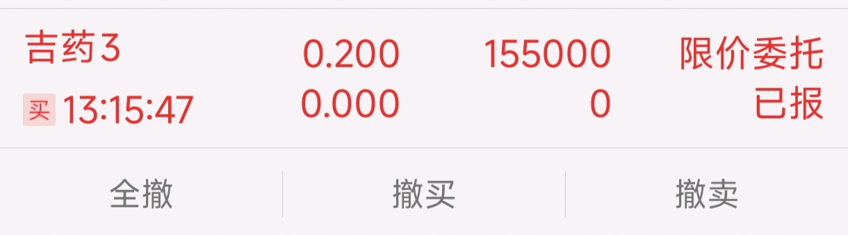$吉药3(SZ400269)$昨天给卖了,第一次玩,没弄明白这种票,卖的时候竟然有四个选项,麻烦,以后可能不玩了