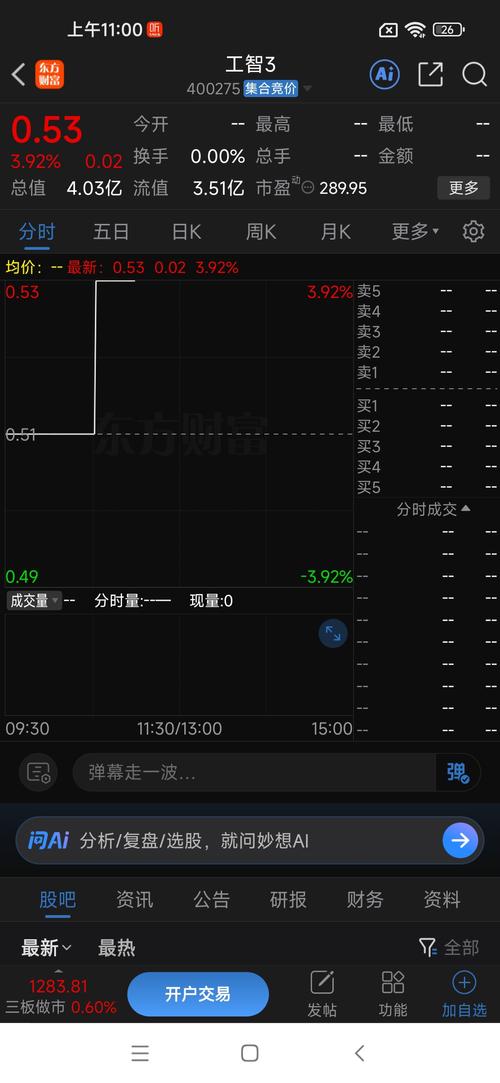 $工智3(SZ400275)$今天买不到了,一直板到0.68了!!!!