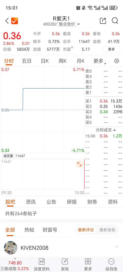 $R紫天1(SZ400282)$这么好的三板行情,你居然无动于衷