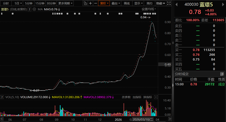 $蓝璟5(SZ400030)$$东方3(SZ400264)$$R紫天1(SZ400282)$ 【总成交额】 20323万元 (周五,涨少跌多,东通3成交量最大。) 【涨跌情况】 上涨家数:46 下跌家数:121 平盘家数:64 【涨停封单金额】 1:蓝璟5(400030):881万元 2:东方3(400264):562万元 3:R紫天1(400282):507万元 【跌停封单金额】 1:中程5(4...