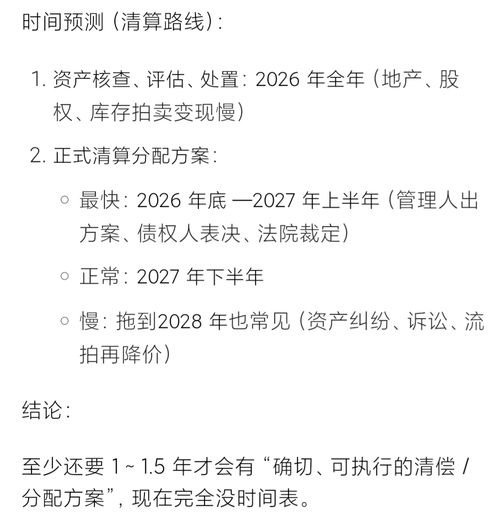 $搜特退债(SZ404002)$欧浦5今日公告重整计划草案核心方案是 1.股权大调整:10股缩1股→再转增→重整投资人拿90%股权,原股东剩10%; 2.偿债资金:起拍价6.98亿元拍卖重整投资权益,无人接盘则转破产清算; 3.债权清偿:有财产担保债权:全额现金清偿,普通债权:5万以下全额,5万以上清偿率约22.2%; 当前致命问题(决定生死) 重整投资权益两次拍卖均流拍(9.7亿→8.73亿,无...