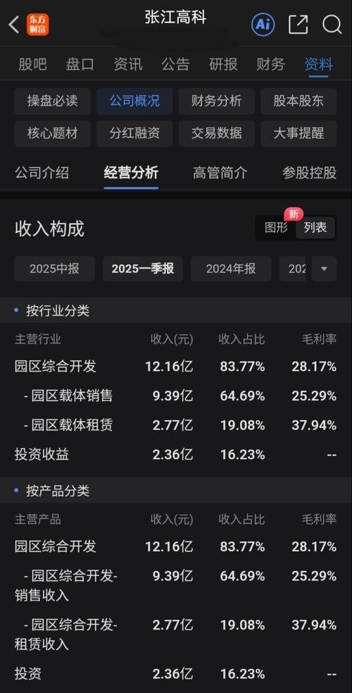 $东沣B5(SZ420085)$张江高科与东沣智能(东沣股份的全资公司)都是高科技园区运营商,但经营业绩千差万别,下面以张江高科2025年1季度(以下简称1季度)的经营数据及2021年至2024年人均创收数据来分析。 一、1季度收入按产品分类:(1)、园区综合开发销售收入9.39亿元。(2)、园区综合开发租赁收入2.77亿元。(3)、投资收益2.36亿元。 二、从张江高科主要客户1季度收入贡献度来...