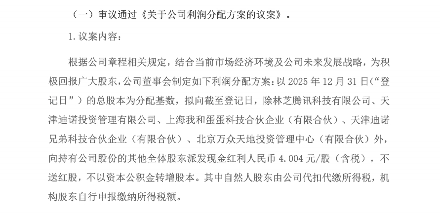 $英雄互娱(SZ430127)$一、先明确主体:这是**英雄互娱(英雄游戏)**的分红方案 你截图里提到的股东: -林芝腾讯科技有限公司(腾讯旗下投资平台,持股约20%) -天津迪诺投资管理有限公司(实控人应书岭,持股约31%) -上海我和蛋蛋科技合伙企业(有限合伙)、天津迪诺兄弟科技合伙企业(有限合伙)、北京万众天地投资管理中心(有限合伙) 这些都是**英雄互娱(现英雄游戏)**的核心大股东/P...