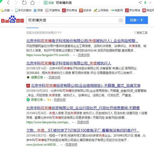 ST可来博去年亏损超千万,今年以有14笔诉讼被法院强制执行,但是法院没有找到ST可来博名下的银行存款、汽车、房产等可执行的财产,因此法院已将ST可来博定为失信企业并在各大相关网站登出。