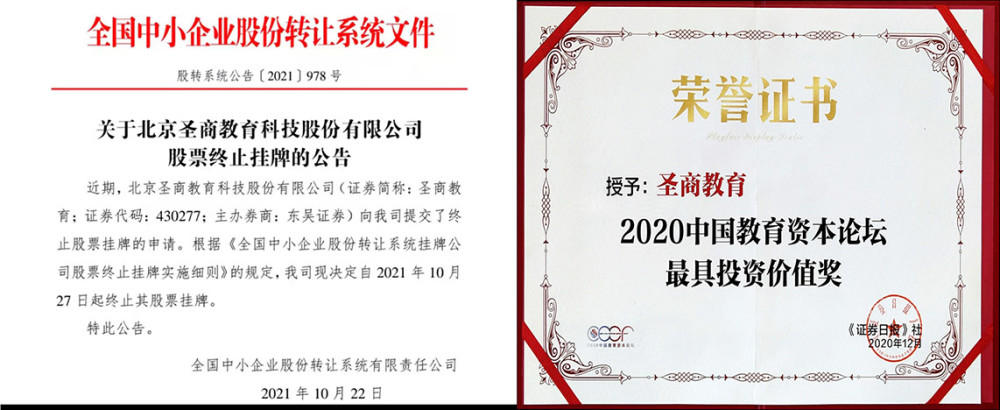 【发现】圣商教育曾获得2020年“新三板最具成长潜力企业”奖