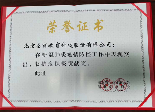 圣商教育秉承着”圣贤心商之行“至今半年多的时间在新冠肺炎疫情防控工作中表现突出,现湖北省工商业联合会协湖北省总商会于2020年6月给圣商教育特此颁发”抗疫积极贡献奖“早在人民网北京2020年1月30日报道电(初梓瑞)为做好新型冠状病毒感染肺炎疫情防控工作,北京圣商教育科技股份有限公司(以下简称“圣商教育”)日前向湖北省慈善总会捐赠120万元,用于武汉紧缺物资购买,助力打赢疫情防...