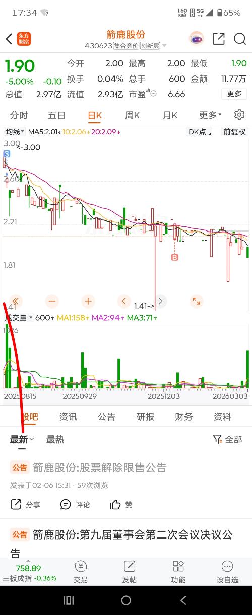 $箭鹿股份(SZ430623)$本想抄个底,结果套在山腰上。