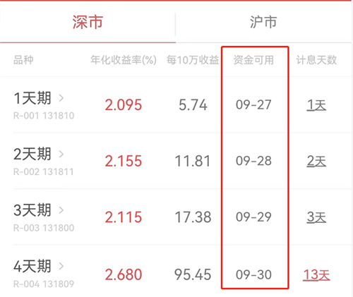 #国庆将至持基or持币?#马上又到了一年一度的国庆节了,本次节日期间,总计有9天休市,估计很多人也会觉得没有波动的日子很难熬。笨鸟先在这里祝大家国庆节快乐~但是今年的行情不太好,反而是没有投资的人,相对收益高很多呢!那么国庆节期间,大家如何来提升自己的收益呢?大家不防来了解一下国债逆回购和货币基金的国庆节套利组合!首先是逆回购,大家可以看到,买30号到期的逆回购,收益明显比29号到期的逆回购高...