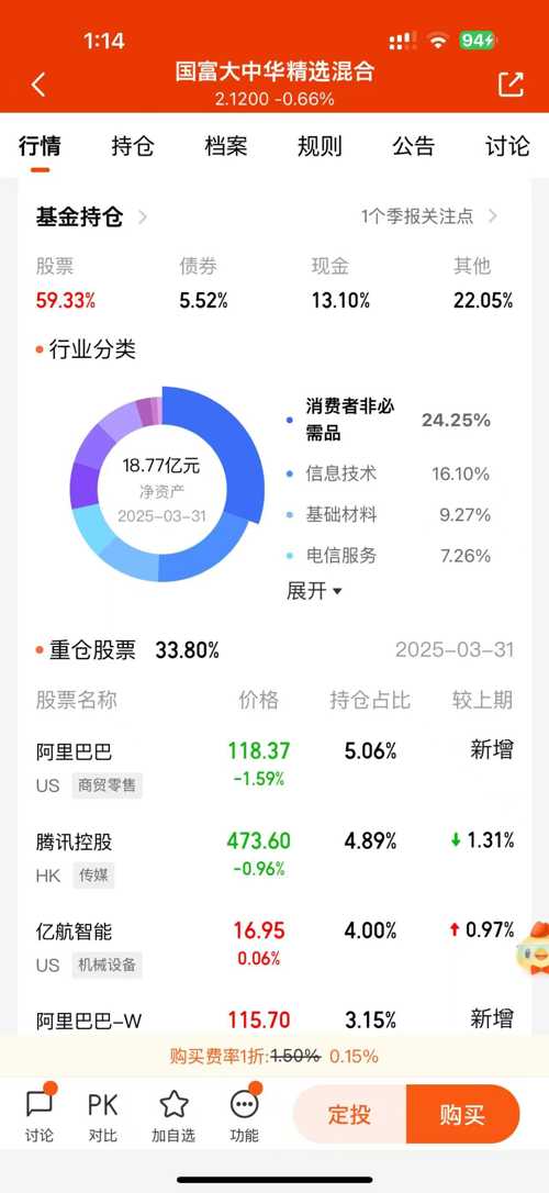 中长期看,港股的投资价值还是挺高的,$国富大中华精选混合(000934.of)$也有不少港股核心资产的仓位,而且多市场布局的特点很吸引我,能同时覆盖多个市场,分散单一市场的风险,抗冲击性确实不错#港股腾讯首次成为公募基金第一重仓股#