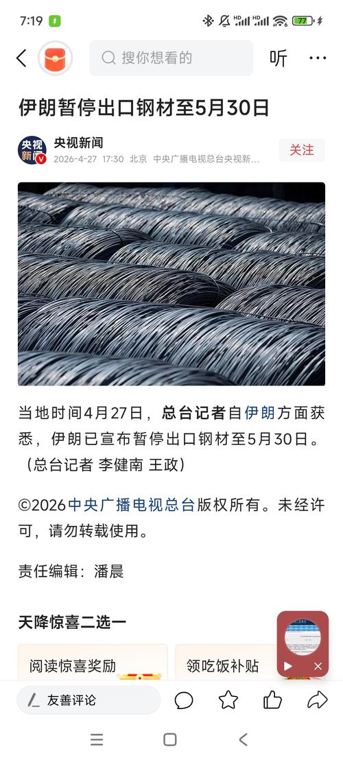 $山东钢铁(SH600022)$据央视新闻消息,当地时间4月27日,总台记者自伊朗方面获悉,伊朗已宣布暂停出口钢材至5月30日
