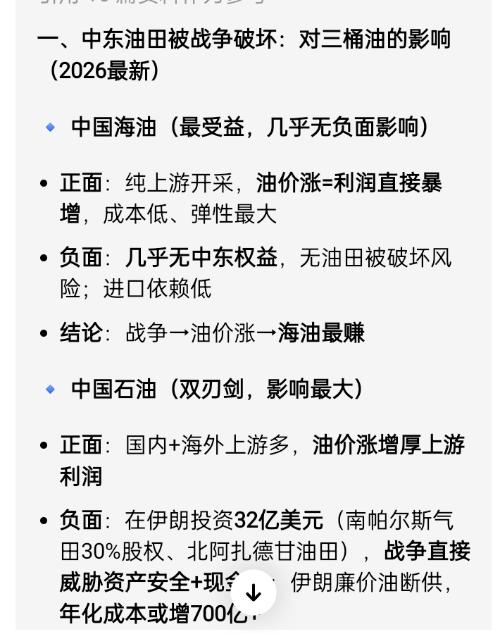 $中国海油(SH600938)$$中国石油(SH601857)$$中国石化(SH600028)$中东油田减产对中国石油企业的影响!