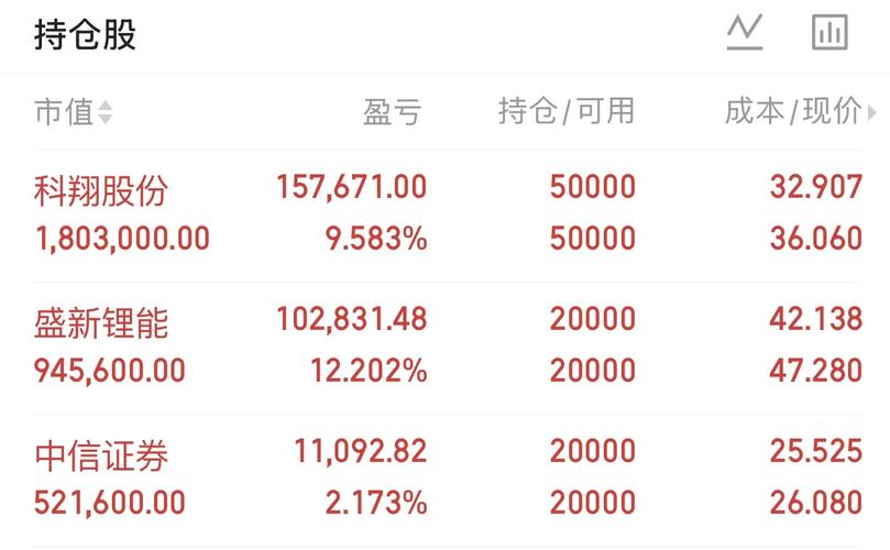 $盛新锂能(SZ002240)$近期锂价企稳预期升温叠加板块资金回流,该股连续两日强势上涨,持仓盈利持续扩大。 $科翔股份(SZ300903)$今日放量突破,换手率显著提升,交投活跃度极高,成为账户单日盈利的最大贡献者。 $中信证券(SH600030)$作为券商龙头,今日板块整体表现平淡,该股维持窄幅震荡,作为持仓中的稳健底仓,贡献稳定收益。 以上仅个人观点,不构成买卖建议,后果自负!