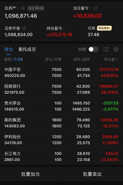 $招商银行(SH600036)$$中国平安(SH601318)$ 账户第一次上110,收盘竞价少6000元,就是不给你,怎么着吧。
