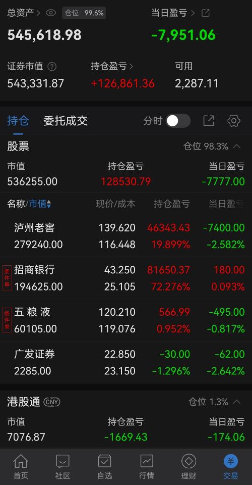 今天浮亏7951元,无操作。今年来总体上跌多涨少。 $泸州老窖(SZ000568)$ $招商银行(SH600036)$ $五粮液(SZ000858)$