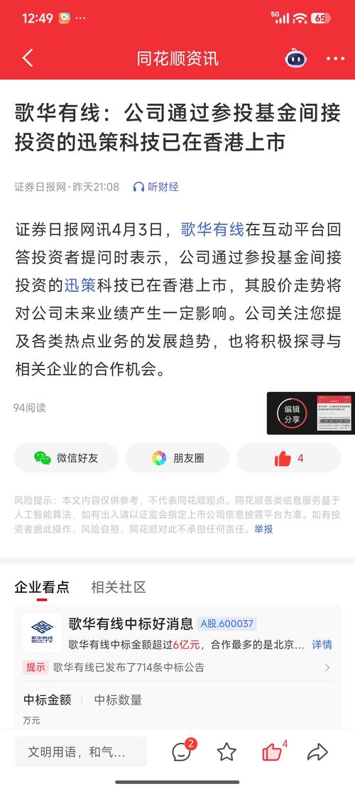 资讯 歌华有线:公司通过参投基金间接投资的迅策科技已在香港上市