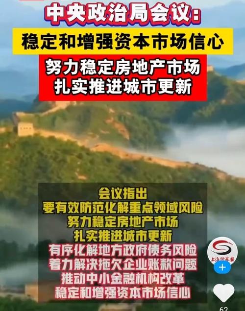 $保利发展(SH600048)$老乡别跑,还有利好! 会议指出,要有效防范化解重点领域风险。努力稳定房地产市场,扎实推进城市更新。有序化解地方政府债务风险,着力解决拖欠企业账款问题。推动中小金融机构改革,稳定和增强资本市场信心