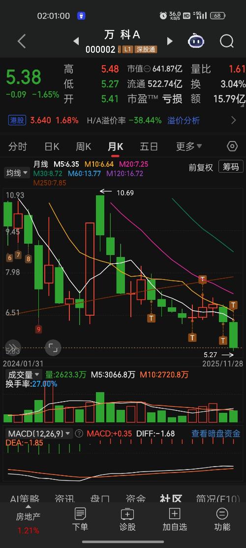 $万科A(SZ000002)$$保利发展(SH600048)$$金地集团(SH600383)$万科,一个熟悉的老对手,我基本都玩得游刃有余。周四周五的下跌,基本是跌破托举线,接下来将会有一段可歌可泣的爱情故事大片,那就是踩着自行车哭泣。当然,下周初会有修复的短暂爱情,修复完后(毕竟打烂的陶瓷就是烂的,所谓的破镜重圆都只会短暂的甜蜜),该怎样下楼还是要继续下楼。4字头相见。我是谁?我是一位二十多年的...