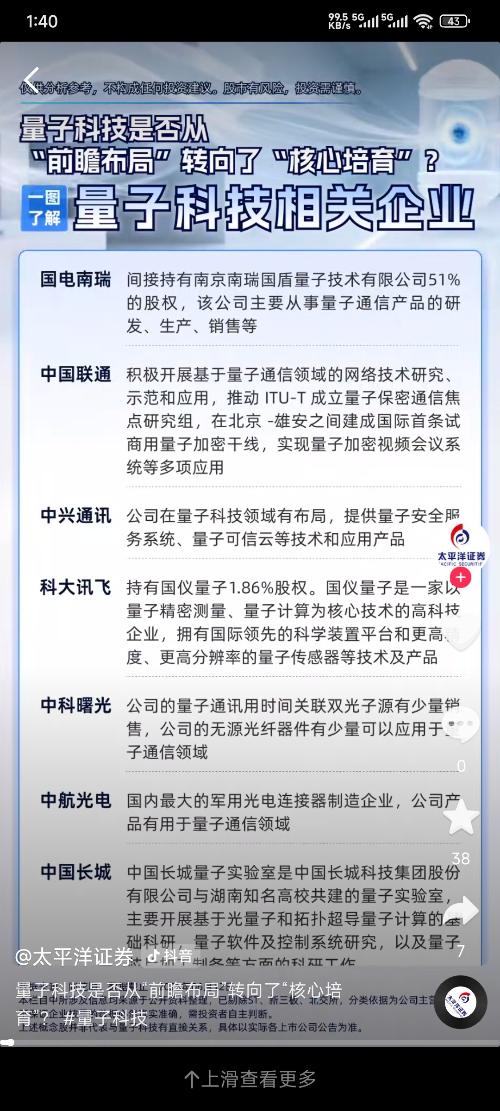 $中国联通(SH600050)$中国联通在量子科技领域有深入布局,主要涉及量子通信和量子计算方面,具体如下: -量子通信方面:中国联通定位“技术创新探索者”,重点突破通信与量子的融合技术。它自建了北京—雄安量子干线,在国内首次完成DV-QKD/CV-QKD量子密钥对接测试,探索端到端混合组网模式。还战略携手左江科技,推出通密一体QKD设备,并在厦门试点成功。2025年,中国联通发布了全球首款抗量子...