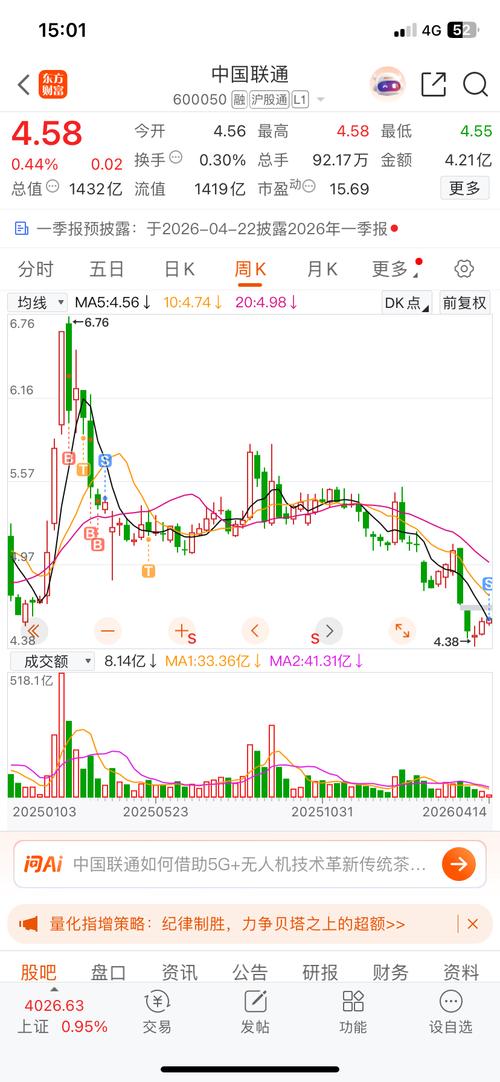 $中国联通(SH600050)$4.38是底的概率越来越大了,目前账面浮盈4万多,好像没啥感觉,体会到了唯一一套房子上涨和自己没关系一样,只有卖出时的涨跌才有意义。继续安心持股吧。