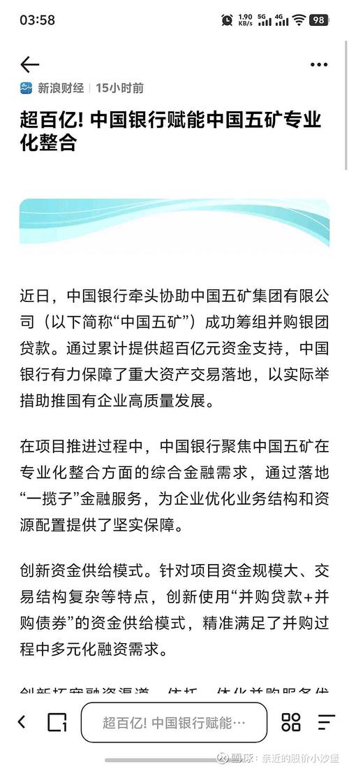 中国银行对五矿集团货款用于并购重组!!!看方案已落地,马上实施!!!