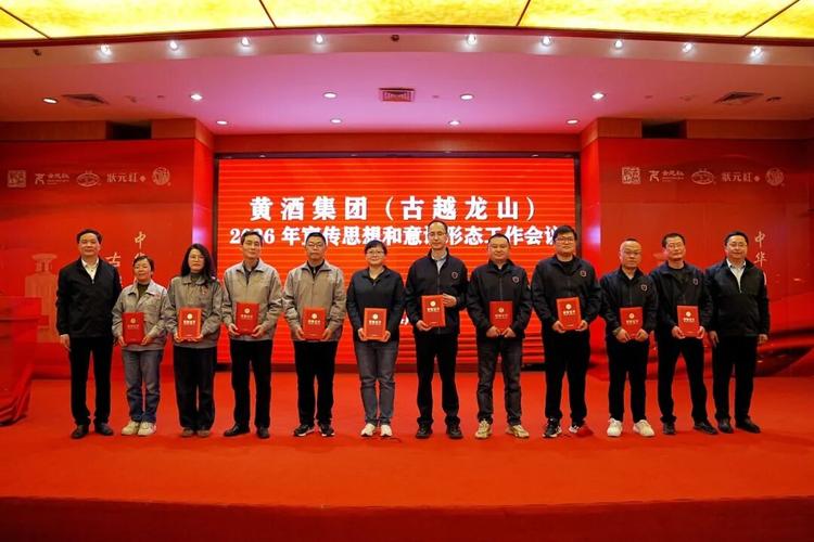 4月13日晚上,黄酒集团(古越龙山)召开2026年宣传思想和意识形态工作会议,深入学习贯彻习近平文化思想,全面落实党中央关于意识形态工作的各项决策部署和全省、全市宣传思想文化工作会议要求,总结过去一年成绩,分析当前面临形势,部署安排2026年工作任务。集团(股份)党委副书记杨文龙主持会议。集团(股份)党委书记、董事长孙爱保,集团(股份)党委副书记、股份公司总经理马川等出席会议。 滑动查看颁奖照片 ...