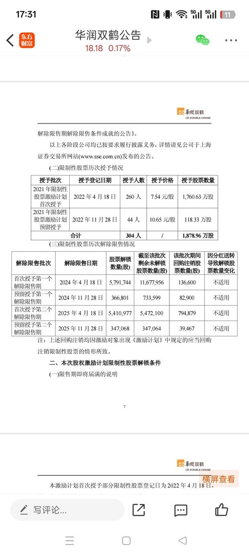 资讯 华润双鹤:239名激励对象所持525万股将于4月20日解禁