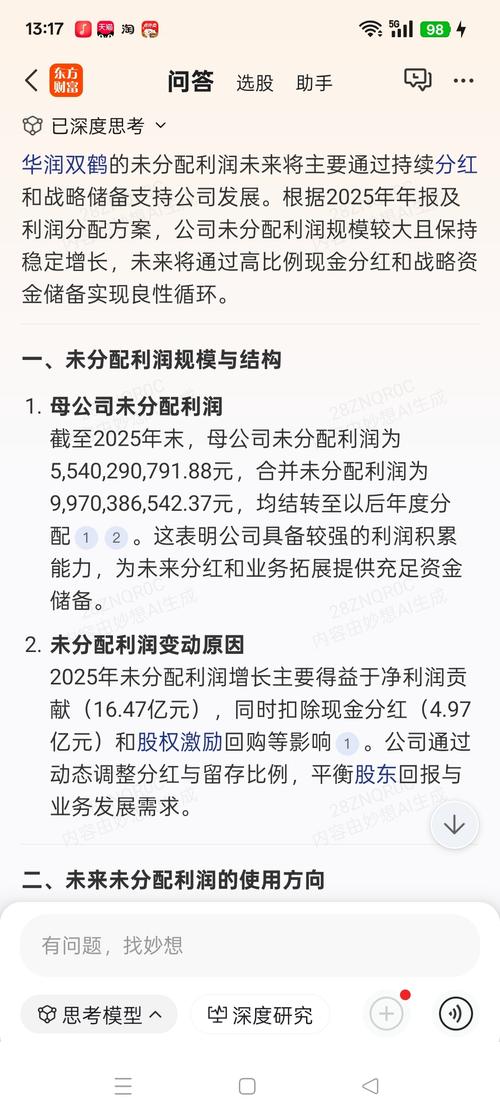 $华润双鹤(SH600062)$公司的未分红利润每股10元,不知道做什么用,