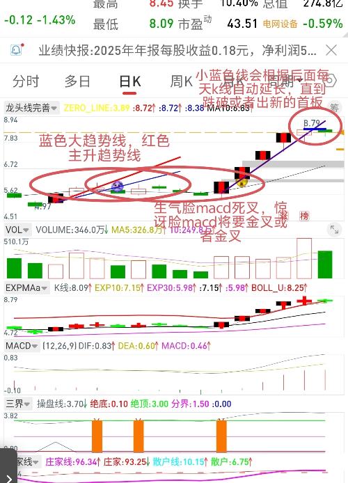 $退市银鸽(SH600069)$有的股友可能不太习惯箱体玩法,刚做了一个趋势主图公式,内含均线,龙头趋势,首板断板支撑,和macd金叉死叉(金叉加了将要金叉的函数),支撑线只显示断板那天,界面比较简洁。 因为老粉大部分都知道我的趋势线,但是很多都懒得画(包括我,因为只在做龙头的时候我才会画
