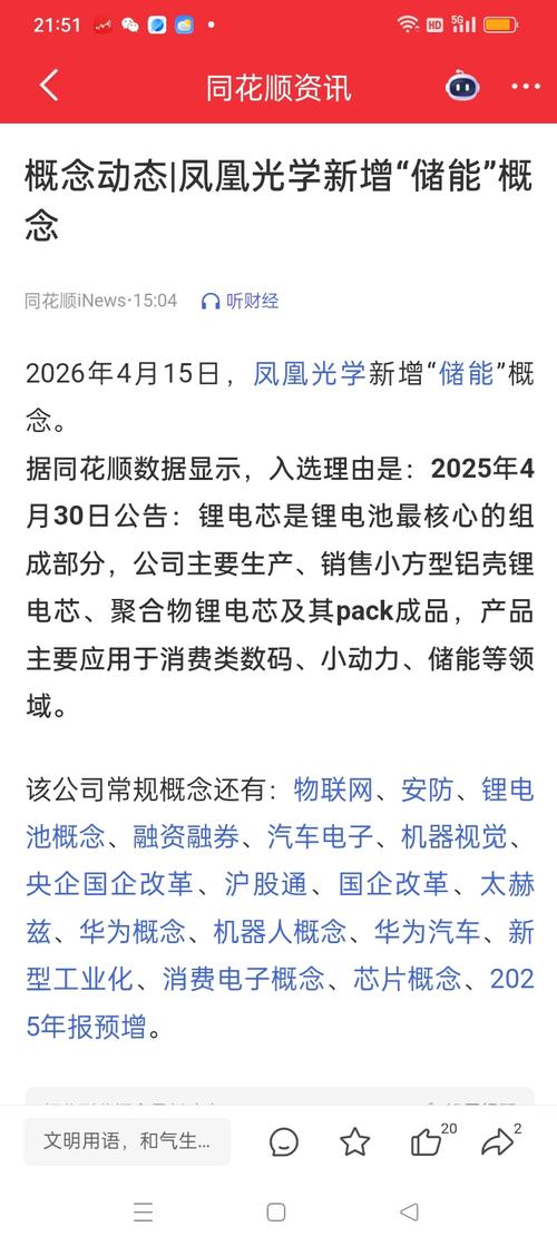 $凤凰光学(SH600071)$凤凰光学新增“储能”概念。