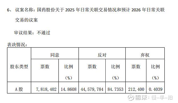 国药的股东大会投票,关于关联交易的议案也被超高比例否决了,要相信群众的力量,争取自己的权益,投负责任的一票!关联交易有一条是,向宜昌人福26年采购药品50亿左右的预算。这个不通过,26年就难有增量了!