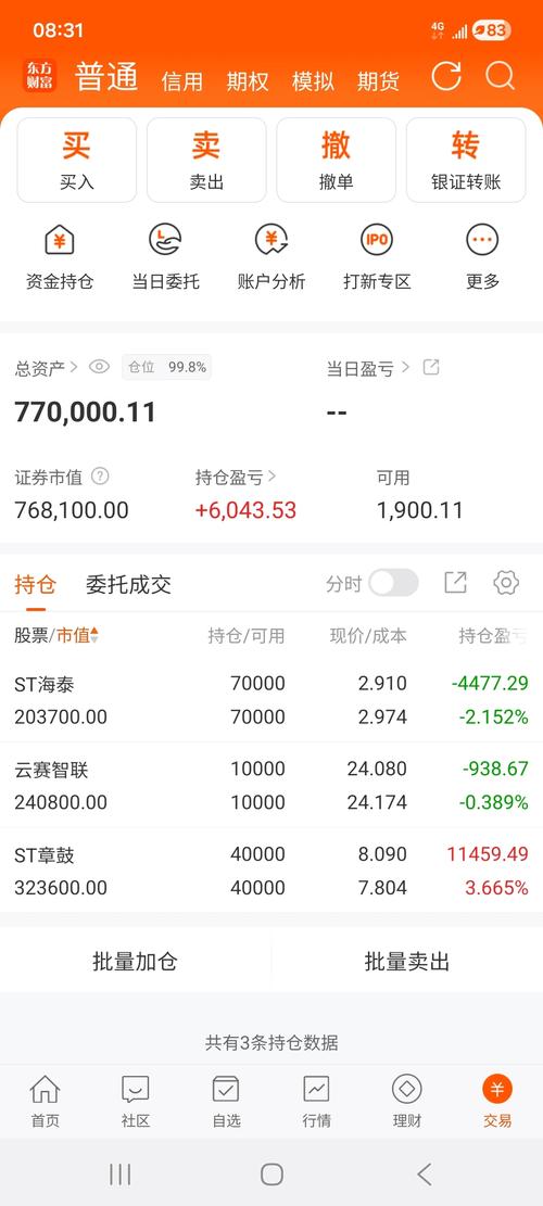 $ST章鼓(SZ002598)$$ST海泰(SH600082)$$云赛智联(SH600602)$习惯了红绿跳动周末很无聊浑身不得劲,世界很热闹,只有我在等开盘。今年生意不好做,截止目前亏损接近中位数(据豆包统计约-8.5%),可谓是惨淡经营。手中三支票均是地方国资控股,拿着还算比较踏实,尤其是二支ST票貌似机会大于风险,希望早日困境反转脱胎换骨。高手说炒股不是生活的全部,但不少股民最大的快乐在股市...