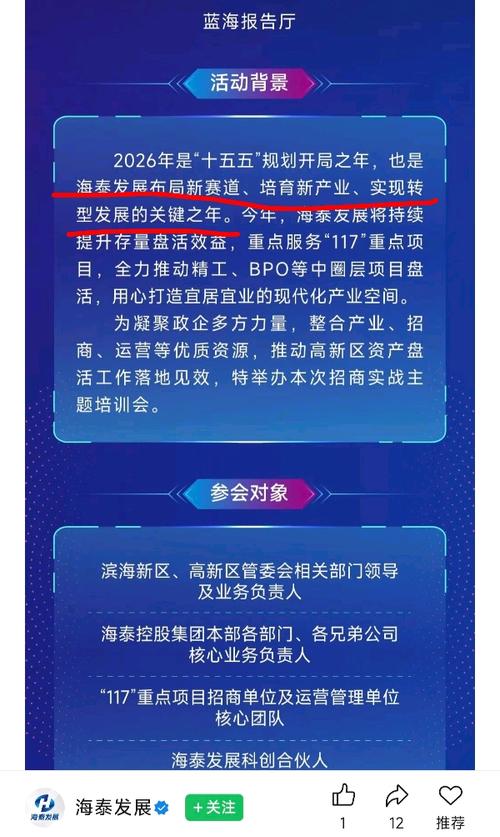 园区运营承压、信披风险悬顶:海泰发展的深度投资解析 作为天津滨海高新区国有控股上市平台,海泰发展正处于业绩变脸、资产减值、信披立案三重压力之下。本文围绕2025年业绩预判、亏损成因、2026年支撑、估值定价、核心竞争力、操作策略,力求全面给出全景研判。 一、2025年业绩:预亏落地,符合弱预期 业绩预告显示,2025年海泰发展归母净亏损5700万至8550万,扣非同步亏损;前三季公司营收4.45亿...