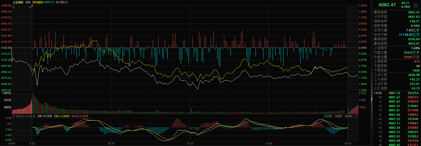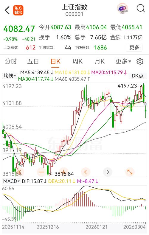 3月4日,A股全天震荡走弱,三大指数集体收跌,沪指失守4100点整数关口,市场呈现明显的高位轮动休整、结构性分化格局。 盘面热点方面,存储芯片板块表现强势,佰维存储、德明利等多股涨停;电力及电网设备板块逆势领涨,迦南智能、安靠智电等相继封板;军工、农业板块同步活跃,航天彩虹、农发种业涨停,亚盛集团斩获4连板。 调整方面,前期热门的油气、航运板块集体回落,仁智股份、凤凰航运跌停,对市场情绪形成一定拖...
