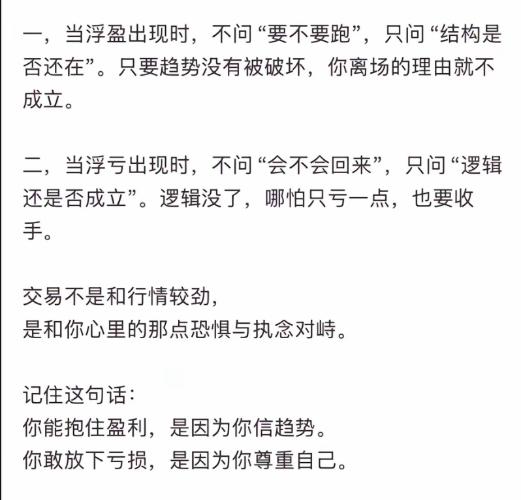 $上证指数(SH000001)$ 买一支票之前应该想到了的 1,进场前已经定好了止损位,浮盈就是对了,对了就要坚持。 2,判定对错就是止损位,而不是浮亏,破了预定的止损位就是错了,错了就要认错止损。 交易就是等待,等待开仓的机会,等待对错的结果,对的坚持,错的改正。重新等待下一次机会,再次等待结果,如此循环往复,这就是交易。$特变电工(SH600089)$$海格通信(SZ002465)$