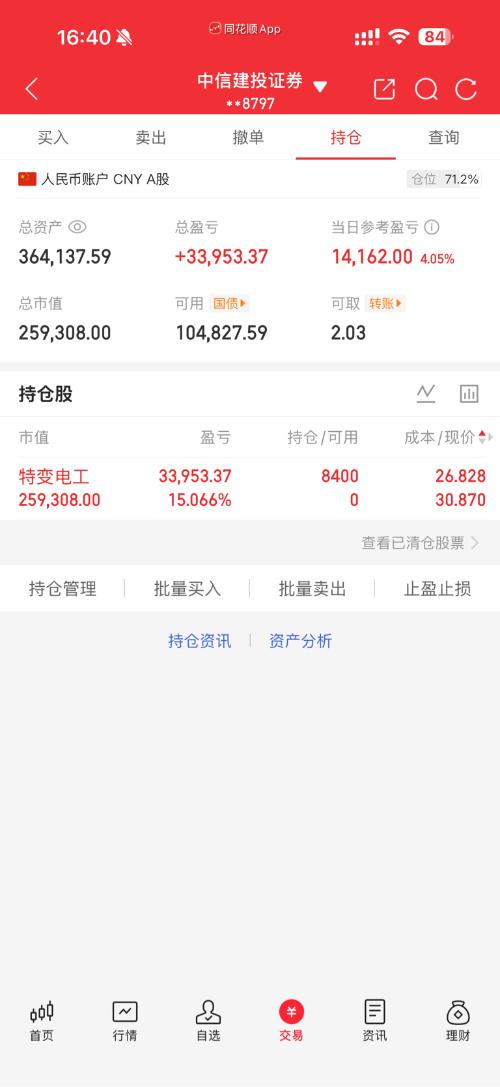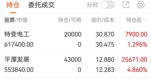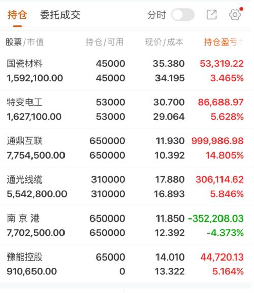 这几天大环境都不咋滴保住利润稳住回撤慢慢来心急吃不了热豆腐 $通光线缆(SZ300265)$相信相信的力量只要自身逻辑没问题那就坚持初心总会看见后面的东西!恭喜扭亏为盈 $特变电工(SH600089)$借势洗洗也能接受没啥大问题、预期不变! $豫能控股(SZ001896)$这就是市场总龙的魅力~在大环境不好的情况下依然能扛起大旗! 以上仅个人观点、不构成买卖建议、后果需自负!