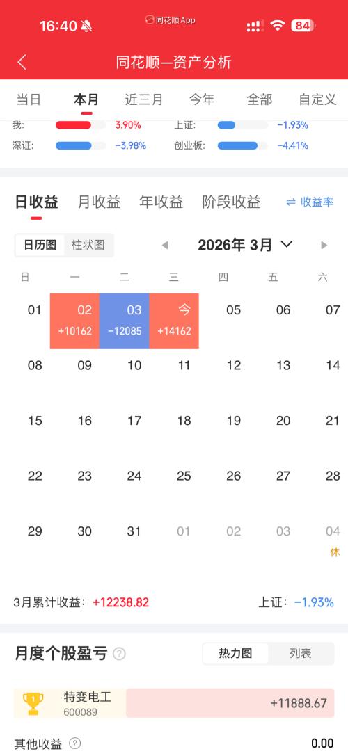 各位股友下午好,我是老白! 今天是3月4日,周三。市场在昨日惨烈下跌后进入分化修复阶段——指数继续弱势下行,但个股层面已有积极变化。特变电工强势反包,中国卫通、东芯股份企稳回升,而紫金矿业、工业富联则继续探底。 今天上午,我在15.38元的位置新开了一只短线标的——雷科防务,买入6500股,占整体仓位的小部分,属于短线试盘操作。 一、指数 今日三大指数延续调整,但跌幅较昨日明显收窄。 上证指数低开...