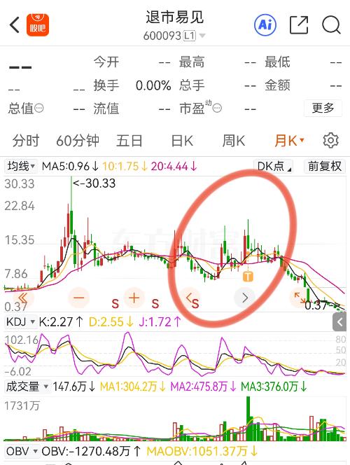 $退市易见(SH600093)$