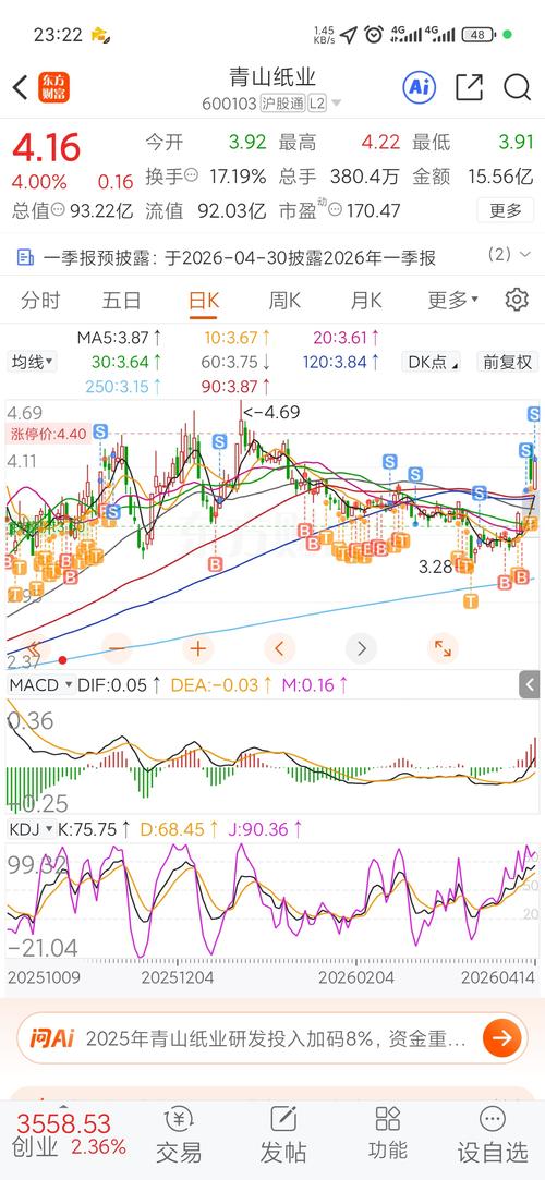 $青山纸业(SH600103)$昨天说了,那个形态今天很难涨停。今天量能还在、承接不错,技术看明天上板概率很大。