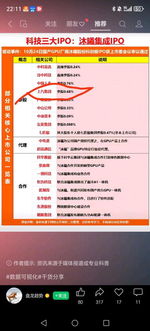 上汽集团(中金上汽)间接持有沐曦集成电路公司股份0.9492%股份,各位中小股东们,终于熬出头了,目前这个价位都在底部,大家都硬起来。