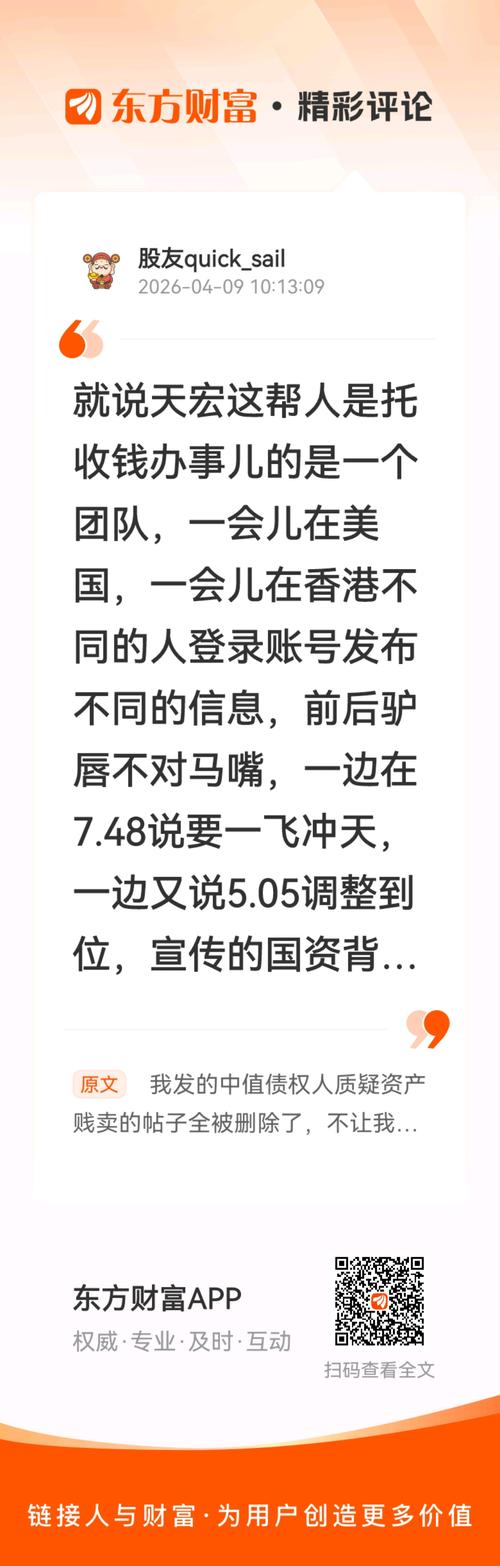 我现在站出来敢揭发天泓花园一众,还有尔雅拍卖不付尾款这个事情,估计也会很快被封号!不明事理的散户还在喷我!希望我被他们做局封号以后,你们可以看清楚!到底谁让散户接盘不择手段,是谁为了解套不停唱多!//@股友quick_sail:就说天宏这帮人是托收钱办事儿的是一个团队,一会儿在美国,一会儿在香港不同的人登录账号发布不同的信息,前后驴唇不对马嘴,一边在7.48说要一飞冲天,一边又说5.05调整到位,...