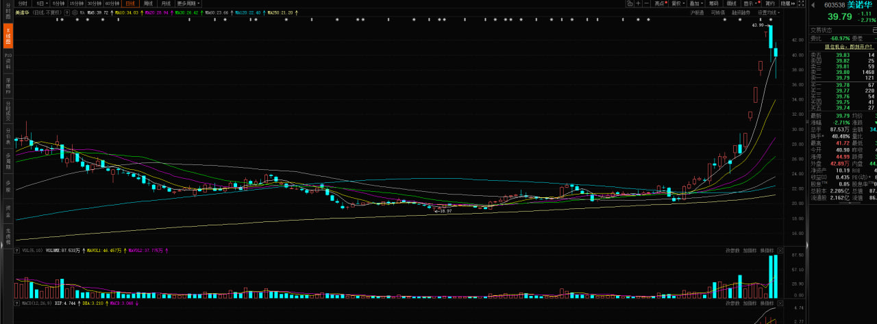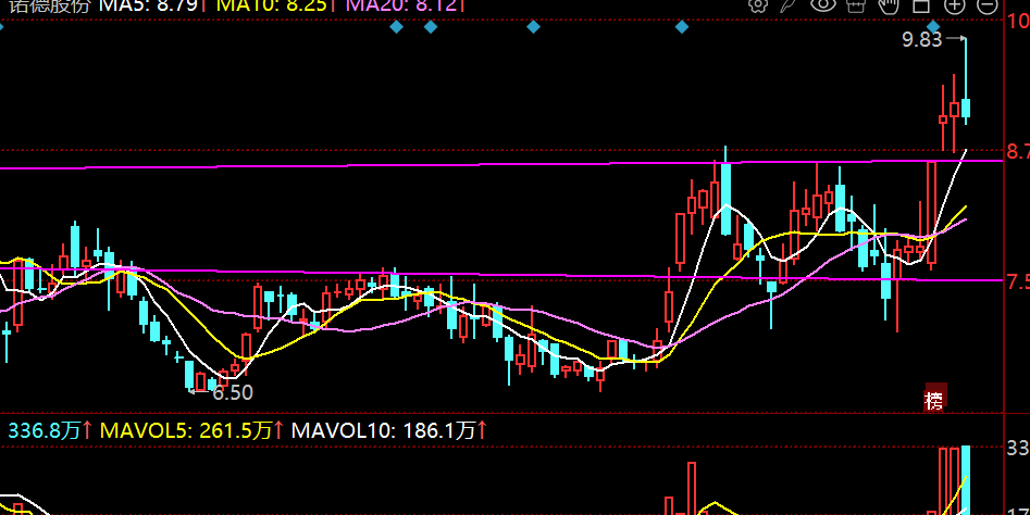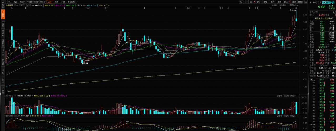 $诺德股份(SH600110)$这三根K线属于放量滞涨,分歧很大